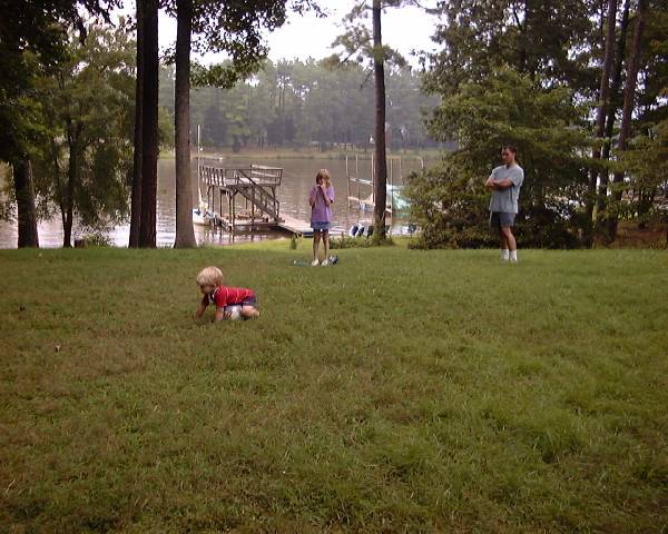 Collin Wilkes demonstrates defensive kickball maneuver -- 7/2003