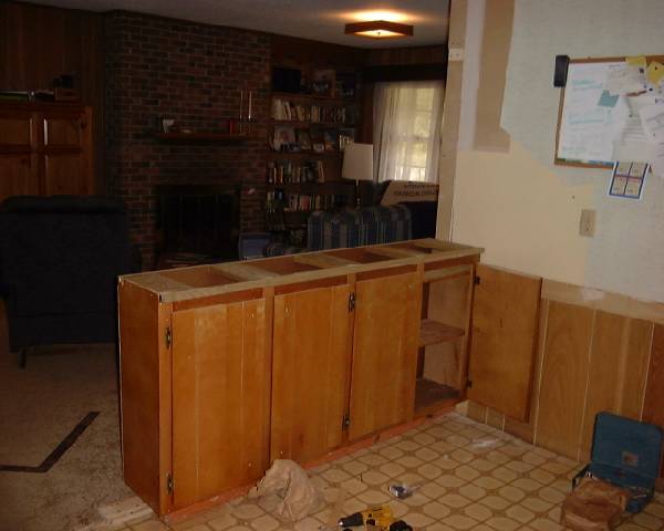 Cabinets moved, before countertop, 8/28/2001